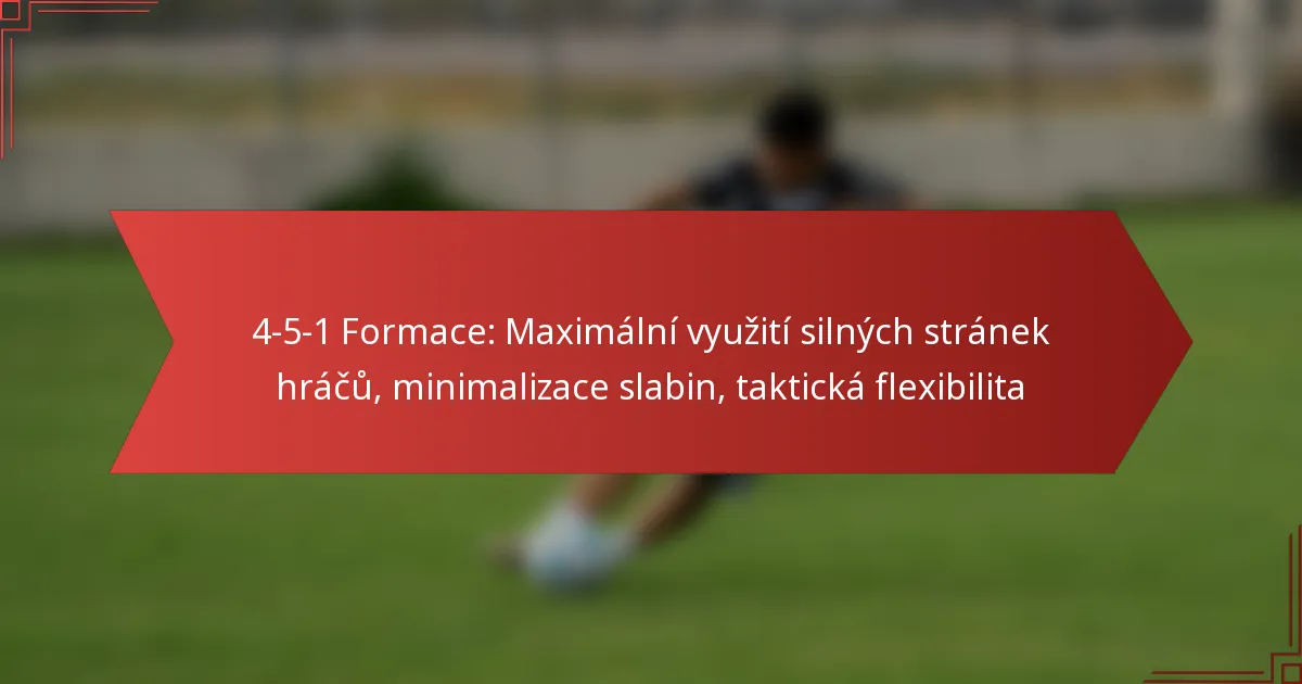 Formace 4-5-1 ve fotbale je taktické uspořádání, které zahrnuje čtyři obránce, pět záložníků a jednoho útočníka. Tato formace je navržena tak, aby poskytovala silnou přítomnost ve středu hřiště při zachování obranné solidity.